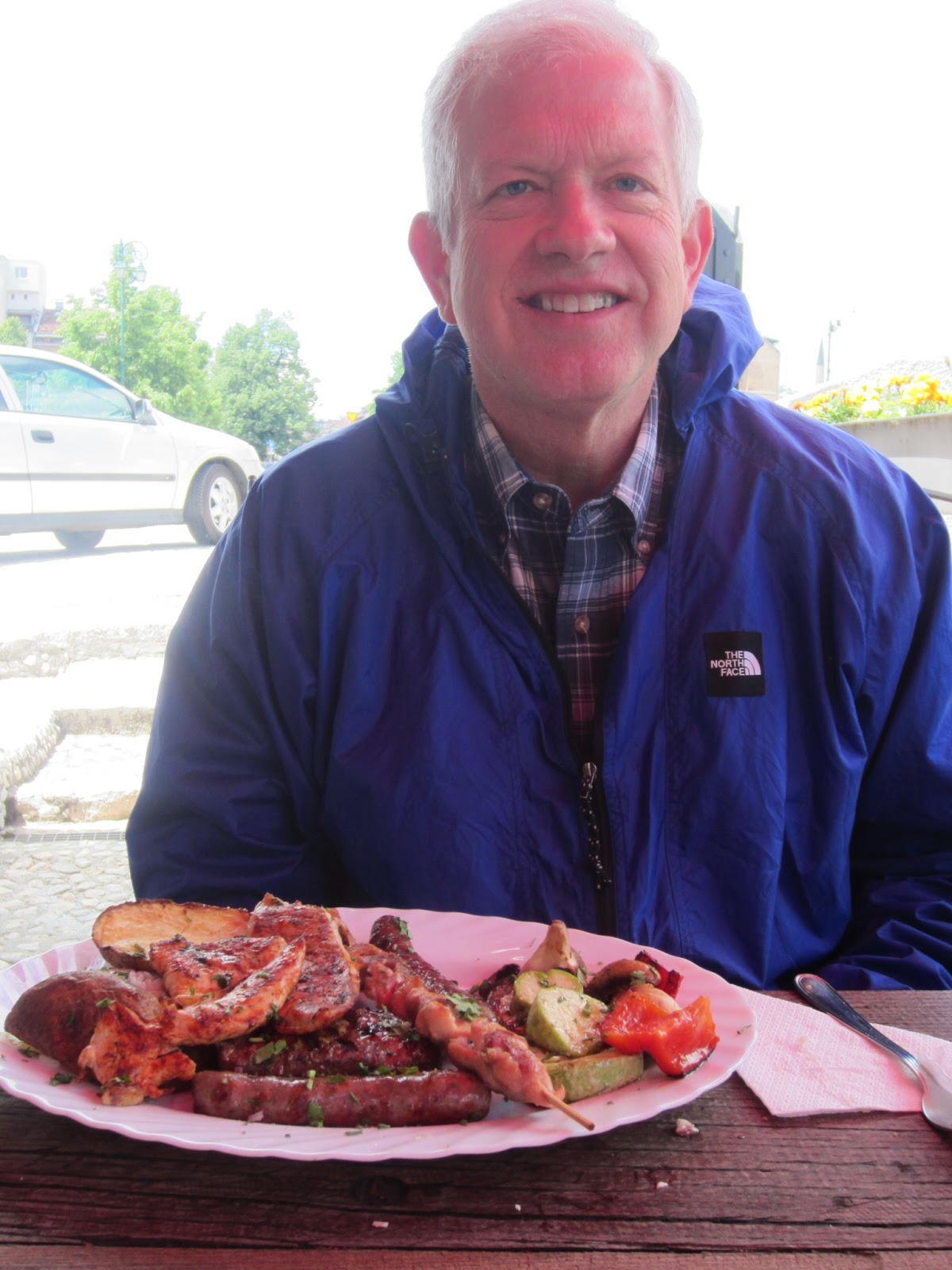 Our food was delicious. My dish, a collection of Bosnian specialties, included stuffed onions, stuffed eggplant, sausage, and veal: