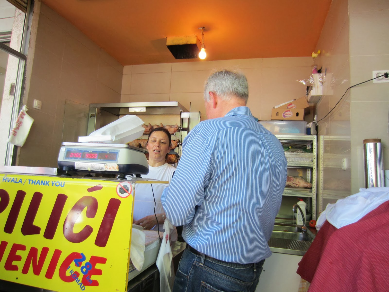 At another stall, a man was slicing prosciutto, or prsut, as they call in in Croatia. This particular chunk had been aging three years.