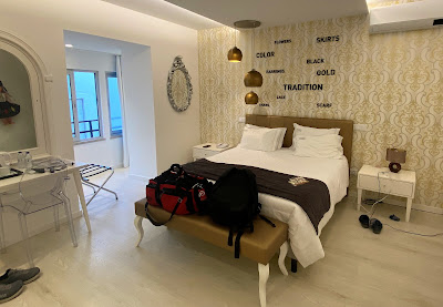 It was time to check into our hotel, so we drove through a crazy maze of twisty-turny one-way streets, enjoying the architecture along the way . . .