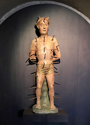 Here we have St. Sebastian, one of my favorite saints (at least in art), who was shot with arrows but did not die. Next to him is St. Michael, Dragon Slayer.