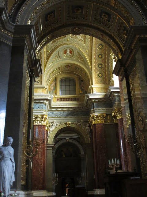 We did get in to the most important church in Hungary, St. Stephen's Basilica, located on the PEST side of the city.  It is named for Stephen, the first king of Hungary, who ruled from 975-1038.