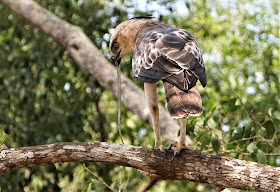 Bob was pretty excited about this next series of photos--a crested hawk eagle eating a snake: