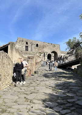 We picked up our rental car from Alamo--a VW Golf that was much too small for the four of us and our carry-ons, but we had no choice but to make do. One of our first sightings was Mount Etna. One of the tallest and most active volcanoes in Europe, it was impossible to miss. It's current height (subject to change in the next eruption) is 11,104 feet. In 2021, Etna had so many eruptions that its height actually increased by 100 feet! I read that it is two-and-a-half times taller than Pompeii, which really surprises me. It has a hiking trail and was named a UNESCO World Heritage Site in 2013, but this was about as close as we got to it.